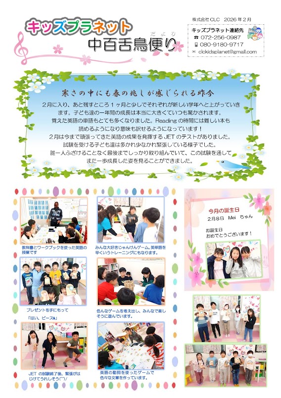 なかもず URLをコピーしました! 関連記事 JET(Junior ENGLISH Test) 2026年2月19日 中百舌鳥校 1月 お便り 2026年2月19日 中百舌鳥校 12月 お便り 2025年12月12日 中百舌鳥校 11月 お便り 2025年12月12日 中百舌鳥校 10月号 お便り 2025年10月16日 英語でゲーム 2025年10月16日 英会話の授業 2025年10月16日 プログラミングの授業 2025年10月16日